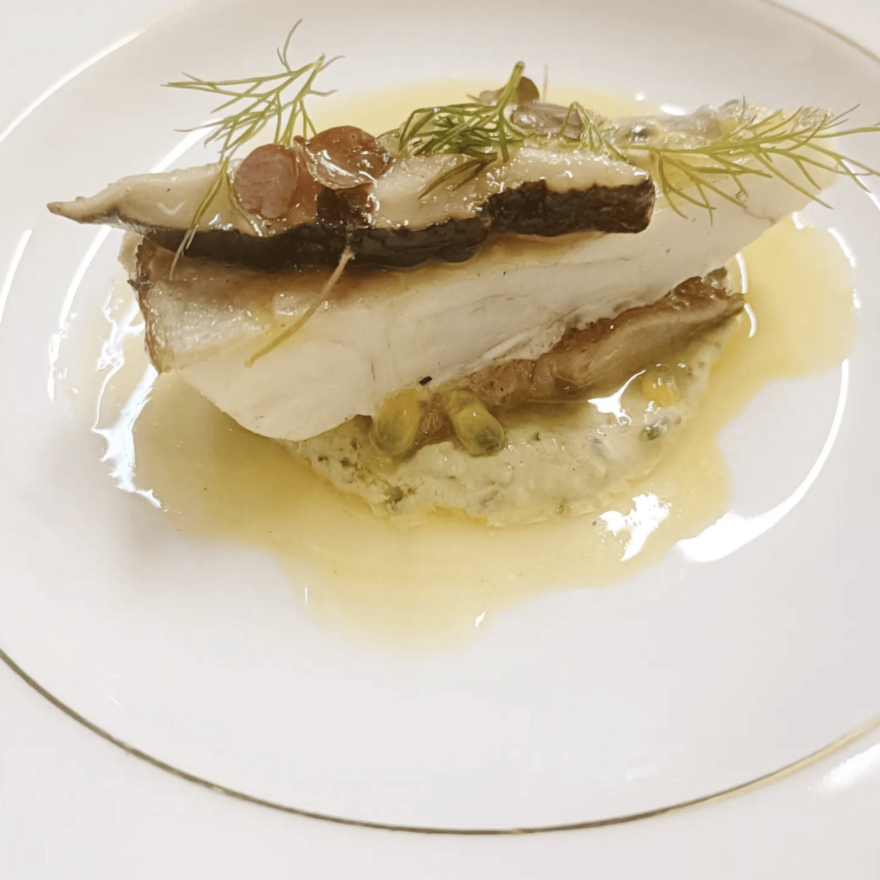 Turbot meunier, rémoulade olives vertes et salicornes, fruit de la passion, shiitake, fumé de poisson 🤩 Notre chef @tonon_antoine fait des merveilles ! Et notre carte vous réserve encore plein de surprises. Pour avoir un aperçu de la carte du restaurant cliquez-ici.