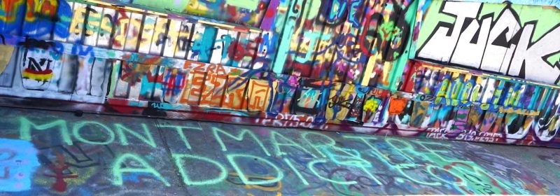 Une fois n’est pas coutume, quittons Montmartre et sa Butte en direction de la Porte de la Chapelle, où pour la deuxième année consécutive, L’Aérosol, temple éphémère de la street-culture, investit les entrepôts SNCF inoccupés de la rue de l’Evangile. C’est à la faveur d’une chaude après-midi de juillet que la team Addict a enfin découvert les lieux et pu s’exercer à l’art du graffiti.