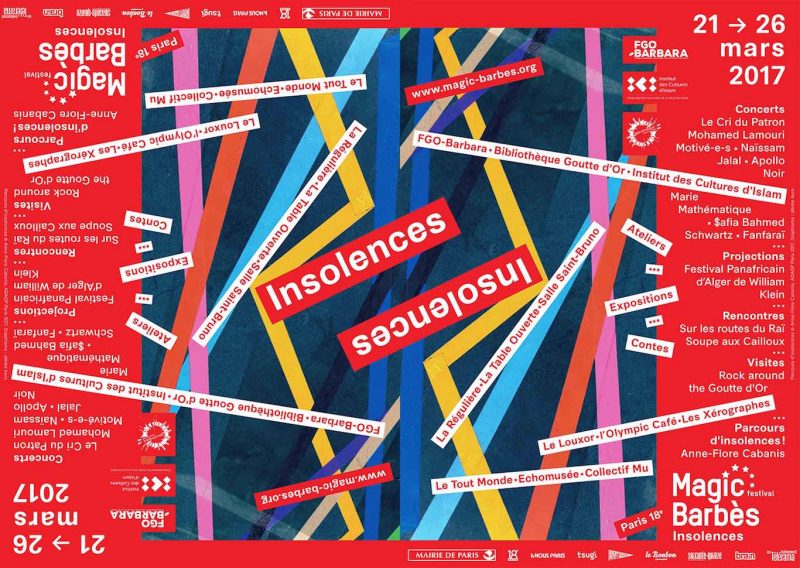 FGO–Barbara, l’Institut des Cultures d’Islam et la Bibliothèque Goutte d’Or poursuivent cette année encore le Festival Magic Barbès. La 7e édition de Magic Barbès souffle un vent d’impertinence avec le thème Insolences.