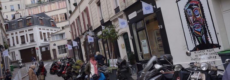 La rue Androuet est peut-être l’une des plus petites rues de Montmartre, mais certainement aussi l’une des plus connues, sans que l’on mémorise forcément son nom. Elle attire en effet les touristes du monde entier venus voir la fameuse « épicerie d’Amélie Poulain », mais également depuis plusieurs mois les curieux et autres amateurs d’art contemporain à l’occasion d’événements éphémères organisés par les Studios de Paris.