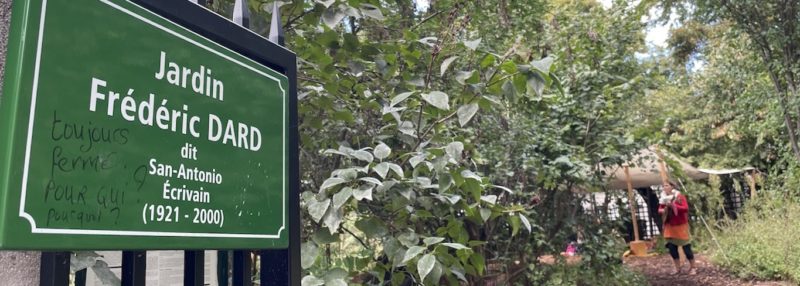C’est l’un des plus petits, si ce n’est le plus petit jardin de Montmartre, mitoyen à la Cité Internationale des Arts. Ouvert au public il y a quelques années, le Jardin Frédéric Dard s’est très rapidement dégradé, jusqu’à devenir un lieu pas forcément bien fréquenté, surtout la nuit… La bonne nouvelle, c’est qu’il abrite désormais un « Jardin d’Emerveille » destiné aux enfants de moins de trois ans « et à leurs parents et leur enfant intérieur ».