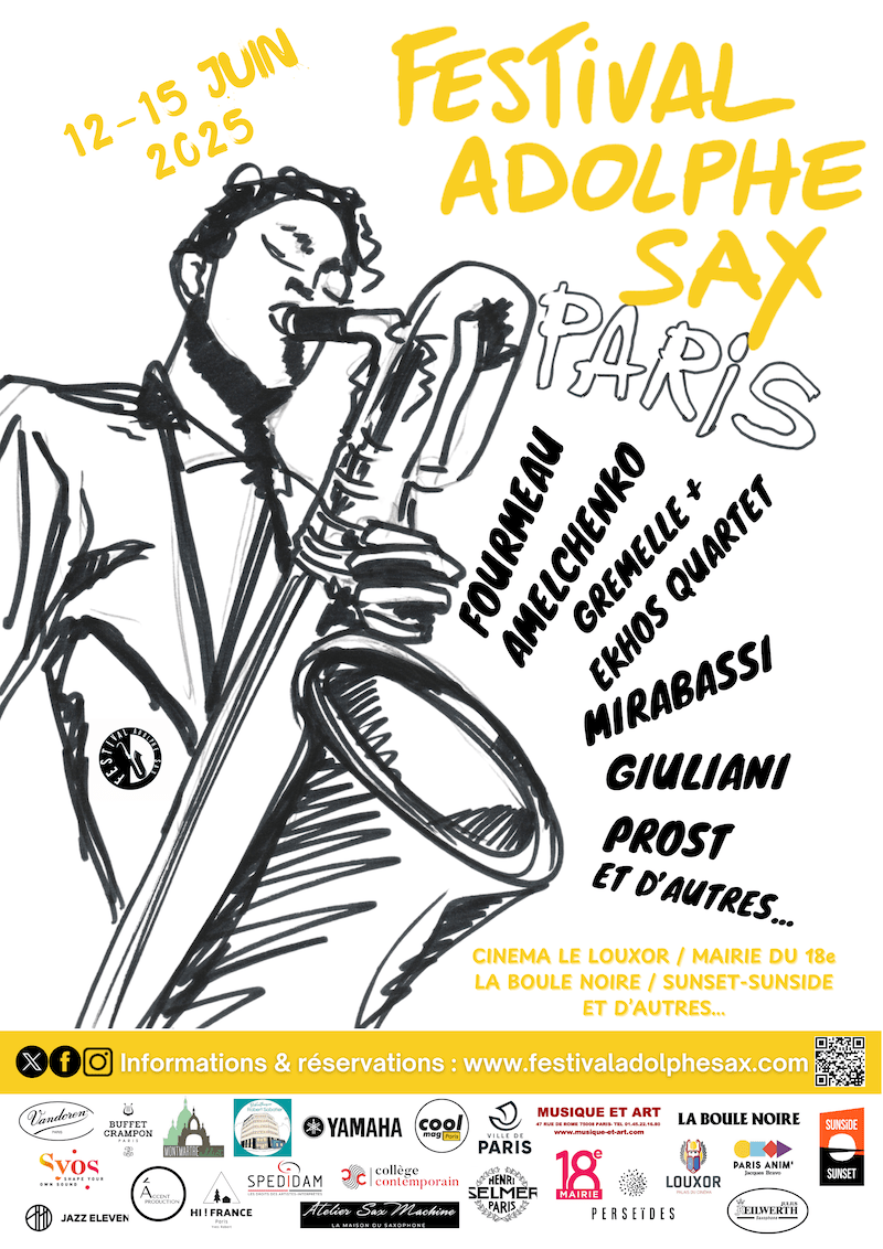 La quatrième édition du Festival Adolphe Sax se déroulera du jeudi 12 au dimanche 15 juin 2024 dans les 7e, 8e, 9e, 10e et 18e arrondissements.