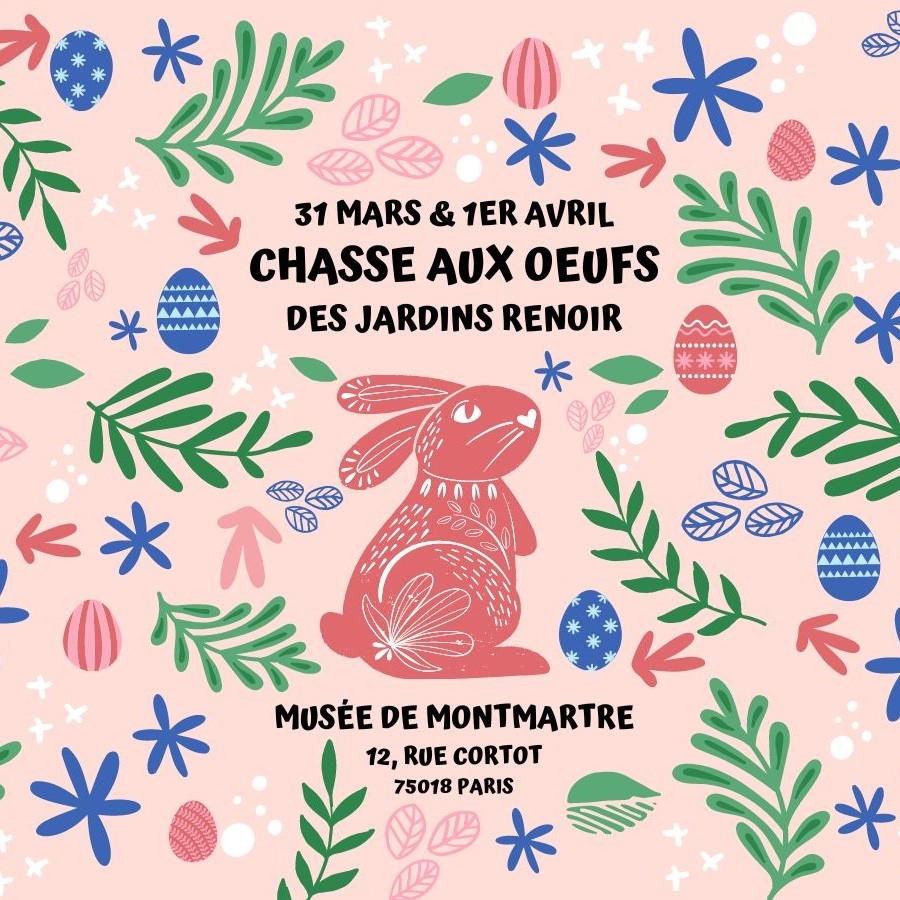 Cette année encore, le Musée de Montmartre accueillera vos enfants de 2 à 12 ans pour une grande chasse aux œufs dans les Jardins Renoir. Lorsque les cloches seront passées, les enfants pourront arpenter les différents jardins du Musée à la recherche des précieux œufs de Pâques. Après avoir débusqué 5 œufs de la même couleur, les valeureux chasseurs recevront les chocolats tant convoités ! Une surprise spéciale attendra les enfants qui trouveront les œufs d’or…
