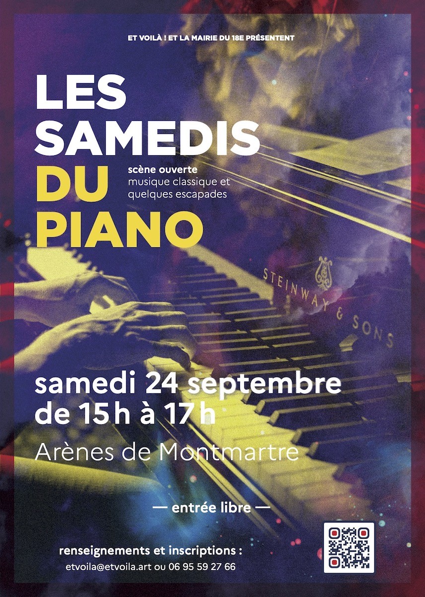 Ce concert marque la fin de la saison 2021-2022 et le début de la saison 2022- 23, avec un concert exceptionnel sur un piano prêté par les pianos Nebout. Après trois rendez-vous dans la salle des fêtes de la mairie, les scènes ouverts se déplacent aux Arènes de Montmartre. Le samedi 24 septembre, de 15h à 17h, elles regrouperont ceux qui y ont déjà participé et peut-être vous ?