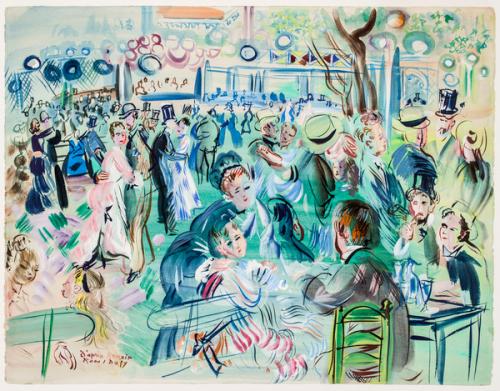 Dufy s’est amusé à reproduire certains chefs-d’oeuvres de l’histoire de l’art, comme le bal du moulin de la galette réalisé par Auguste Renoir. A vous de ré interpréter une oeuvre de votre choix, en utilisant la technique de Raoul Dufy : des couleurs pures et vives, une représentation simplifiée du sujet peint.