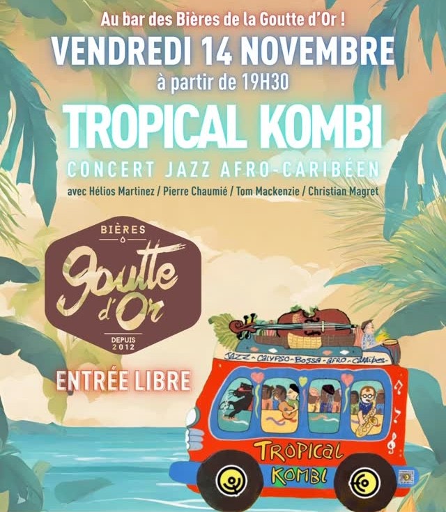 TROPICAL KOMBI, c’est ce vendredi à la Taproom de la brasserie ! Un quatuor de jazz afro-caribéen basé dans notre quartier, et si tu les as déjà entendu, tu sais qu’ils ont la vibe 🎶