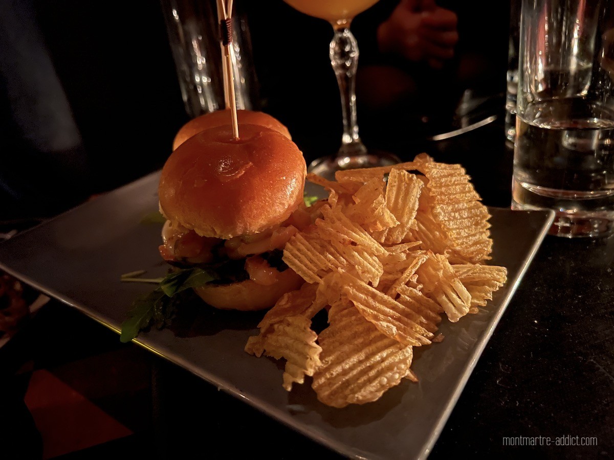 Après de gros travaux de décoration, le bar ouvre ses portes en mars 2022, et rencontre très vite son public : une clientèle de quartier fidèle qui prend plaisir à se retrouver entre voisins pour boire un verre et grignoter un morceau sur le pouce. Mais attention, pas n’importe quel verre et pas n’importe quel morceau ! A la carte, on trouve une vingtaine de cocktails dont dix créations maison, mais également du vin et de la bière dont trois de la Brasserie de la Goutte d’or, « parce que c’est important d’avoir le choix ». Côté food, les incontournables planches de charcuterie et de fromage (from Fromages et Ramages juste à côté) sont bien présentes, mais on s’attardera plutôt sur les incroyables rillettes de canard confites au Cointreau faites maison, les burgers de crevettes (une dinguerie), la burrata, les rillettes de poireaux ou la suggestion du jour qui, comme son nom l’indique, change tous les jours !