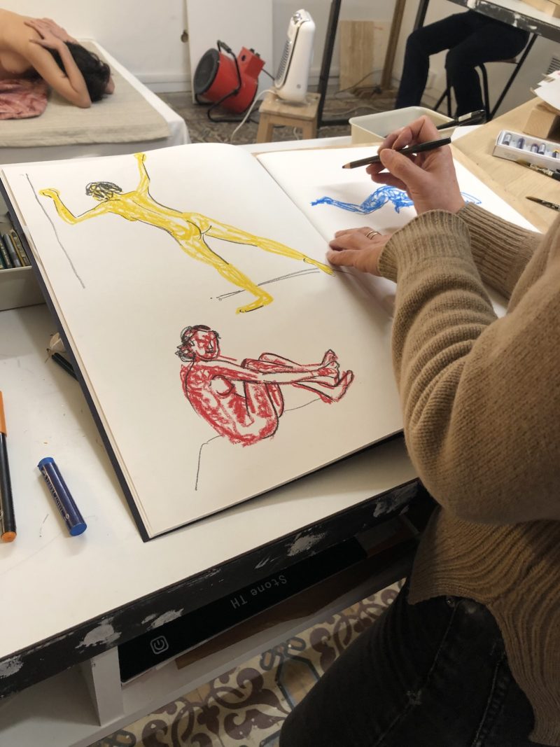 C’est un peu différent pour les enfants, qui ont besoin d’être plus cadrés, mais pour le reste, chacun fait comme il l’entend, et surtout, dessine d’après un modèle vivant ou une nature morte, mais jamais (ou très rarement) d’après une photo ou un dessin « parce qu’une photo, c’est déjà de la 2D, donc le travail est déjà à moitié fait, alors que ce que l’on demande au dessinateur, c’est justement de passer de la 3D à la 2D. » Pour Camille, à partir du moment où l’on sait dessiner un corps, on peut presque tout dessiner.