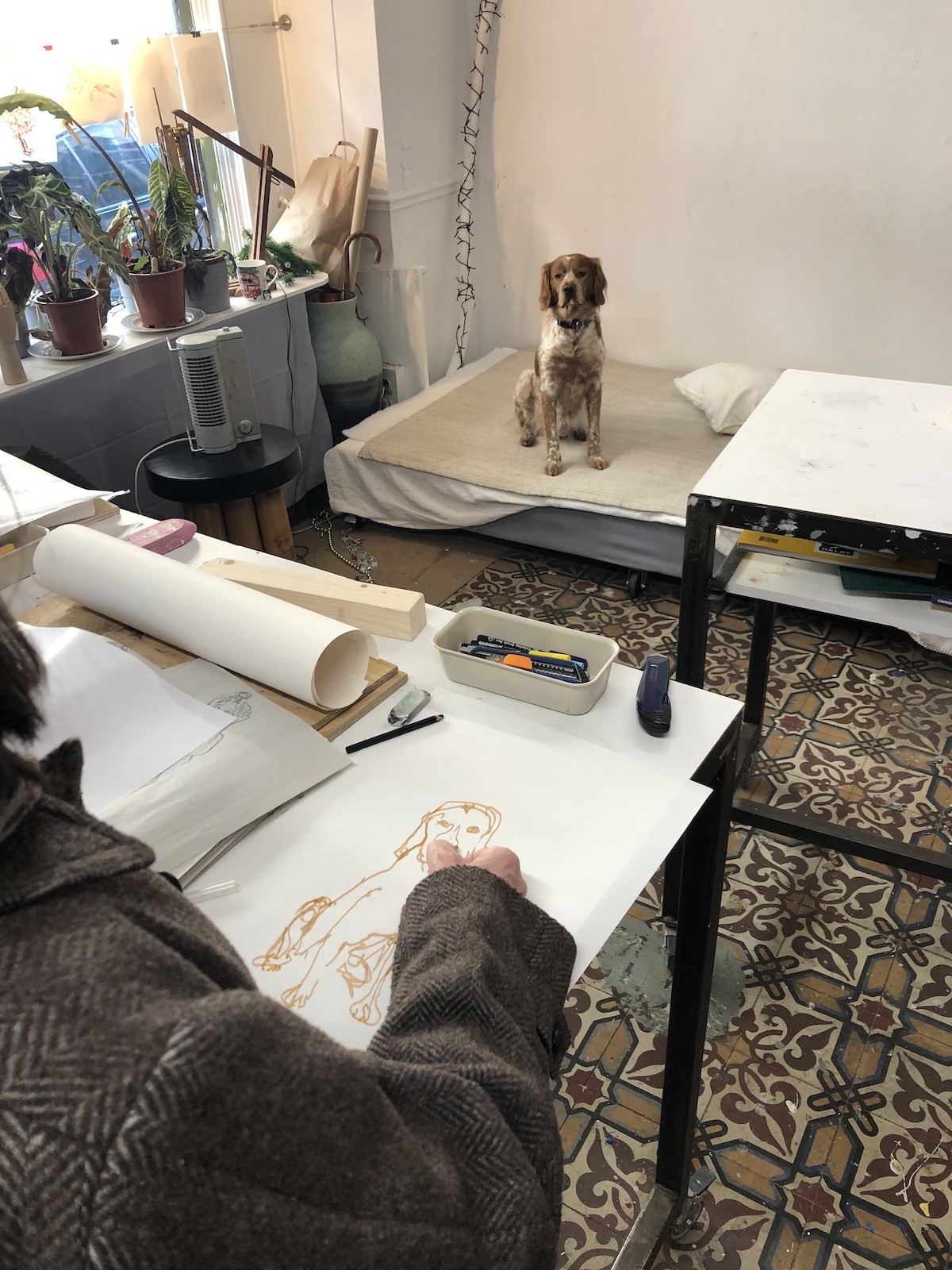 C’était il y a dix ans, mais si l’idée d’ouvrir un atelier de dessin lui trottait dans la tête depuis un moment déjà, il aura fallu attendre que son corps finisse par parler pour qu’elle se décide enfin à reprendre le crayon : « je passais presque autant de temps chez le kiné que dans mon atelier. Je fabriquais plutôt des gros meubles, c’était devenu trop physique. Et puis j’avais la sensation de déménager tout le temps, j’avais besoin de me poser ». C’est ainsi qu’en créant le Nouvel Atelier Barbier, elle est enfin revenue à ses premières amours : le dessin.