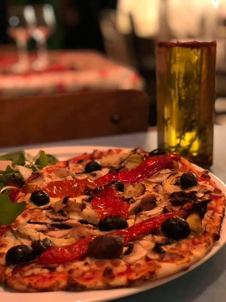 Pizzeria chaleureuse, à l’ambiance 50’s – 60’s, servant de généreuses pizzas à la pâte fine et des desserts maison 🥰