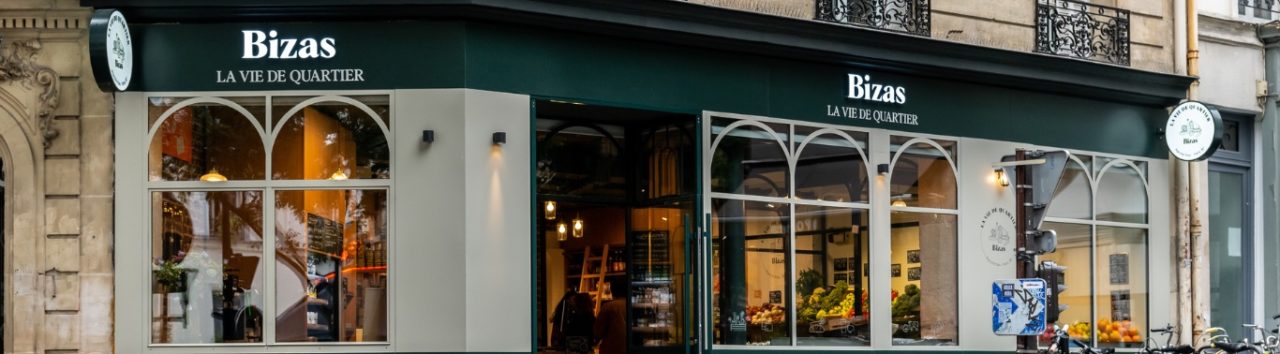 Chez Bizas, pas besoin de pousser la porte, qui est toujours ouverte. C’est une fois qu’on se trouve à l’intérieur que cela se complique. Difficile de savoir où donner de la tête tant les étals font envie. Le concept ? Un mini-marché de proximité où on trouve de tout, et qui évite de courir partout. L’espace de 110m2 a été pensé pour créer une atmosphère conviviale et faciliter la circulation.