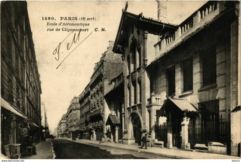 Planquée comme on l’a dit derrière un immeuble, la maison a visiblement été construite en 1901. L’immeuble d’origine a d’abord abrité le siège de l’Association Le Progrès Social, qui animait la Maison du Peuple Français, puis l’École d’Aéronautique comme en témoignent les cartes postales de l’époque, sur lesquelles on reconnaît parfaitement le style de la maison. Reconstruit en 1936, il s’agit depuis d’un immeuble d’habitation, qui aurait abrité l’Association des Chemins de Grande Randonnée, l’Association des Portugais de Paris, puis un atelier de tapisserie, Michel-Antoine ayant retrouvé une enseigne dans le grenier.