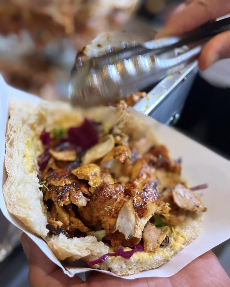 Mais qu’est-ce qu’un “Berliner Kebab” exactement ? Tenez-vous bien : il n’existe pas d’équivalent à Berlin. Noé l’a appelé comme ça parce qu’il s’est inspiré de l’iconique “döner” berlinois, mais le but était de créer le sandwich de ses rêves : celui qui lui manquait à lui, en tant que client à Paris. Il est parti du bon vieux grec qu’on trouve à tous les coins de rues, des cultures culinaires turques et allemandes mais aussi du traditionnel falafel israélien et du sabir irakien. Sa volonté était de démontrer qu’un kebab pouvait être cuisiné et que ça n’était pas (que) de l’assemblage.
