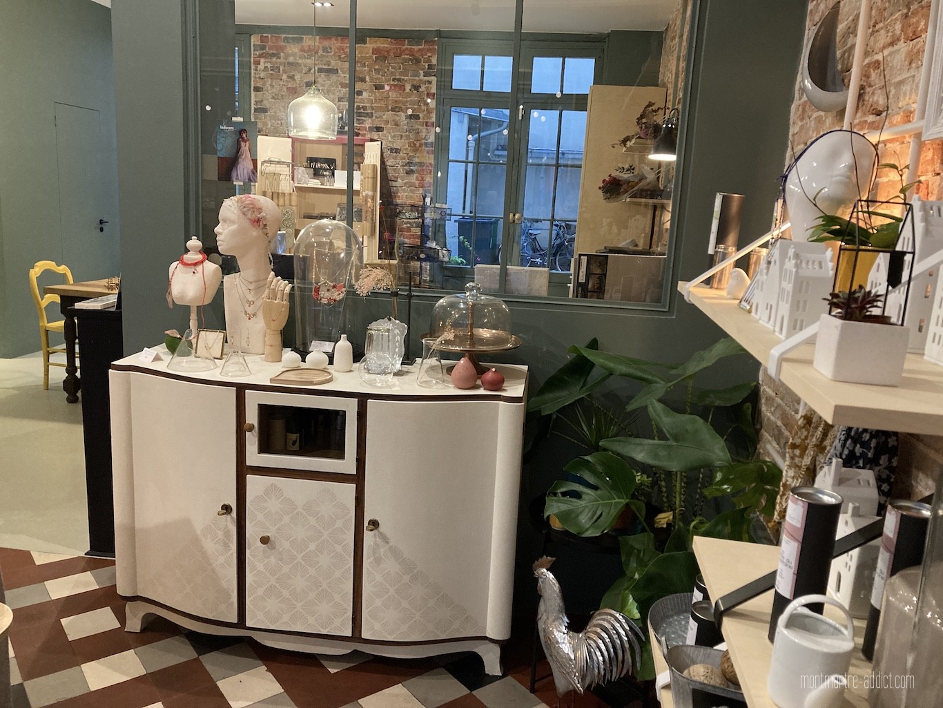 Vous y retrouverez une sélection soignée d’objets déco, d’idées cadeaux pour petits et grands, les bijoux et broderies de Lila, créatrice montmartroise de la marque Lilakacemi Paris. Et évidemment les beaux meubles entièrement peints et patinés à la main par Sophie. Ces pièces uniques sont des rescapées du grenier qu’il nous tient à cœur de faire revivre. Notre petit atelier en a déjà accueilli plus de 150, dont une grande majorité a été repeinte grâce à la fameuse gamme Chalk Paint d’Annie Sloan dont nous sommes devenus les fières revendeuses !