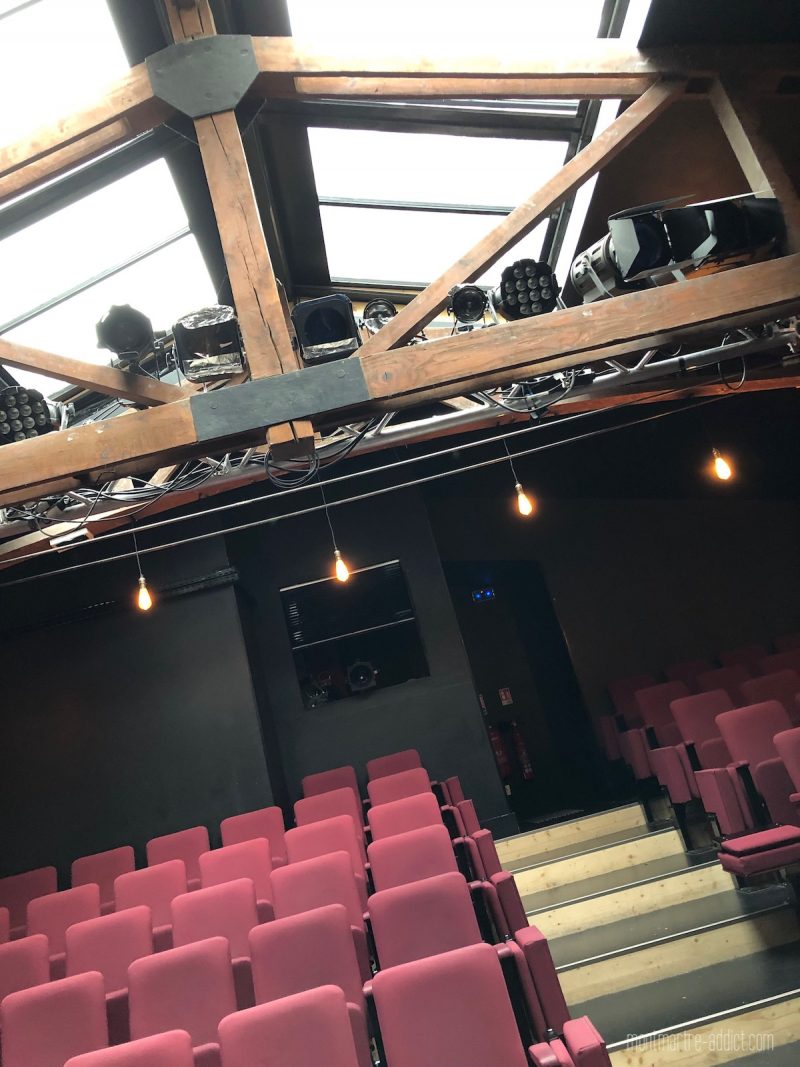 Il y a tout juste deux ans, la salle a été entièrement rénovée. De vrais sièges en estrade ont été installés, le plateau a été agrandi, et la verrière entièrement rénovée ; car oui, vous ne le verrez pas lors des spectacles, mais il y a bel et bien une grande verrière au dessus de vos têtes, qui permet de faire entrer la lumière naturelle si nécessaire, et qui permet de louer le théâtre en journée pour des événements d’entreprises par exemple.