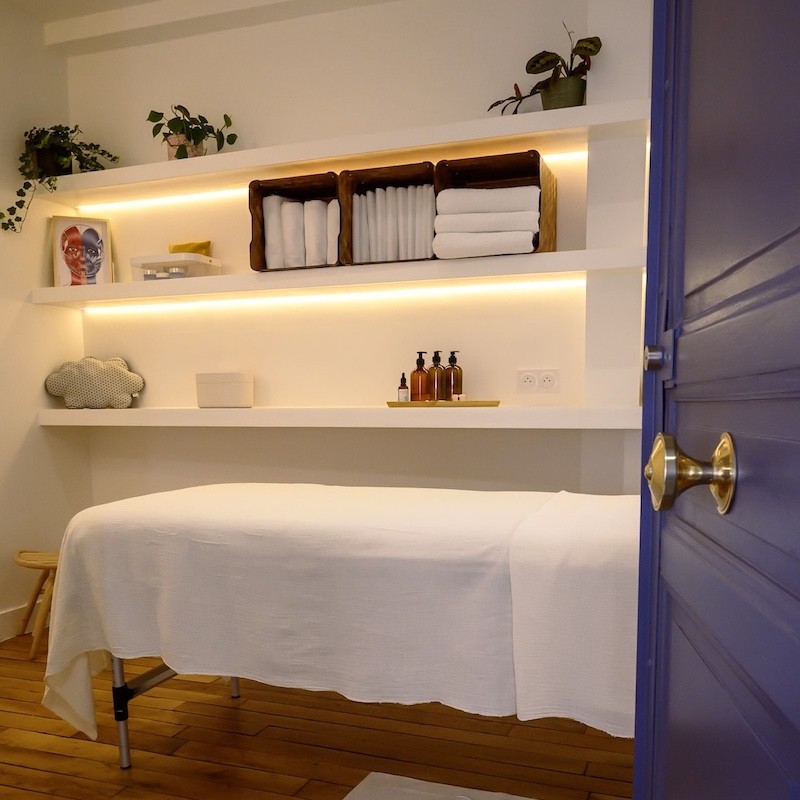 C’est au 7e étage d’un bel immeuble de la rue Gaston Couté qu’Agnès nous a donné rendez-vous. Derrière une élégante porte bleue, elle nous accueille dans son cocon montmartrois pour s’occuper de notre visage. Ça tombe bien, on trouvait qu’on avait une sale tête. Une heure plus tard, le résultat est bluffant. Non seulement le résultat se voit, mais surtout, on se sent étrangement bien… Bienvenue chez Nuage Massage.
