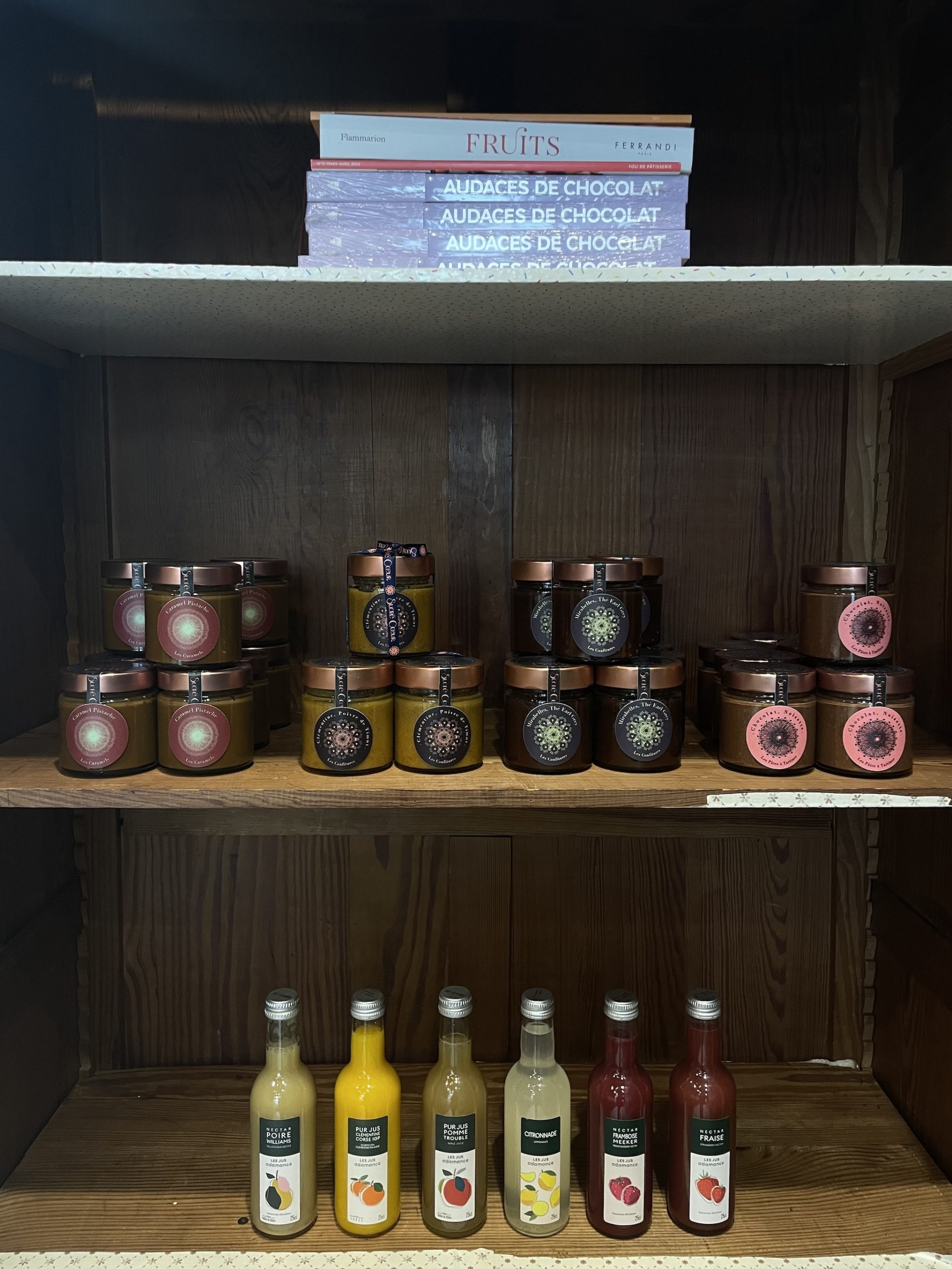 Et nous on se sent bien chez Sucré Coeur, où on peut aussi se poser autour de l’une des trois petites tables en boutique pour savourer une pâtisserie. Le mantra de la maison : des gâteaux de saison. N’imaginez pas trouver un fraisier en plein hiver, pour Marie ça n’aurait aucun sens. Elle apporte une attention toute particulière au choix des matières premières : farines et fruits français bio, chocolat de qualité, oeufs frais fermiers, lait et crème Gérentes, beurre des Monts Yssingelais… Tout est élaboré sur place avec l’aide de sa sous-cheffe Liangya. Les pâtisseries sont individuelles, mais peuvent aussi être réalisées en grand format jusqu’à 10 personnes, ou en version mini pour la version traiteur. Dernier détail et pas des moindres, la gamme est majoritairement sans gluten, et certains gâteaux sont également végan. Tout ceci est bien sûr valable pour les gâteaux de voyage, ainsi que les pâtes à tartiner et les confitures de la maison.